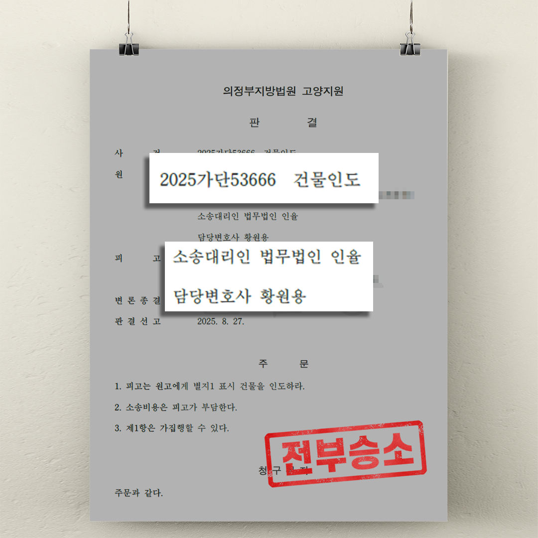 법원은 원고의 전부 승소 판결을 선고하였습니다. 이에 따라 의뢰인은 즉시 강제집행을 통한 명도 절차를 진행할 수 있게 되었고, 장기간의 점유 문제를 신속히 해결할 수 있었습니다.
