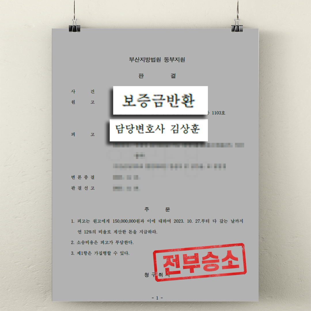임대차보증금반환 사건 - 청구 전부 인용 [부동산 변호사]