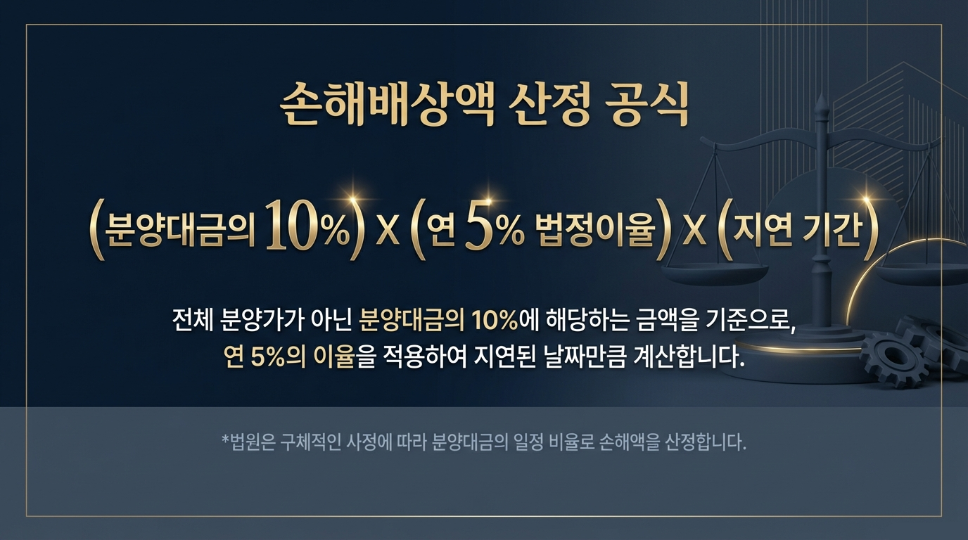 손해액은 분양대긍믜 10%에 해당하는 금액에 대한 법정이율인 연 5%의 비율로 계산한 금액이 손해로 인정하고 있습니다.