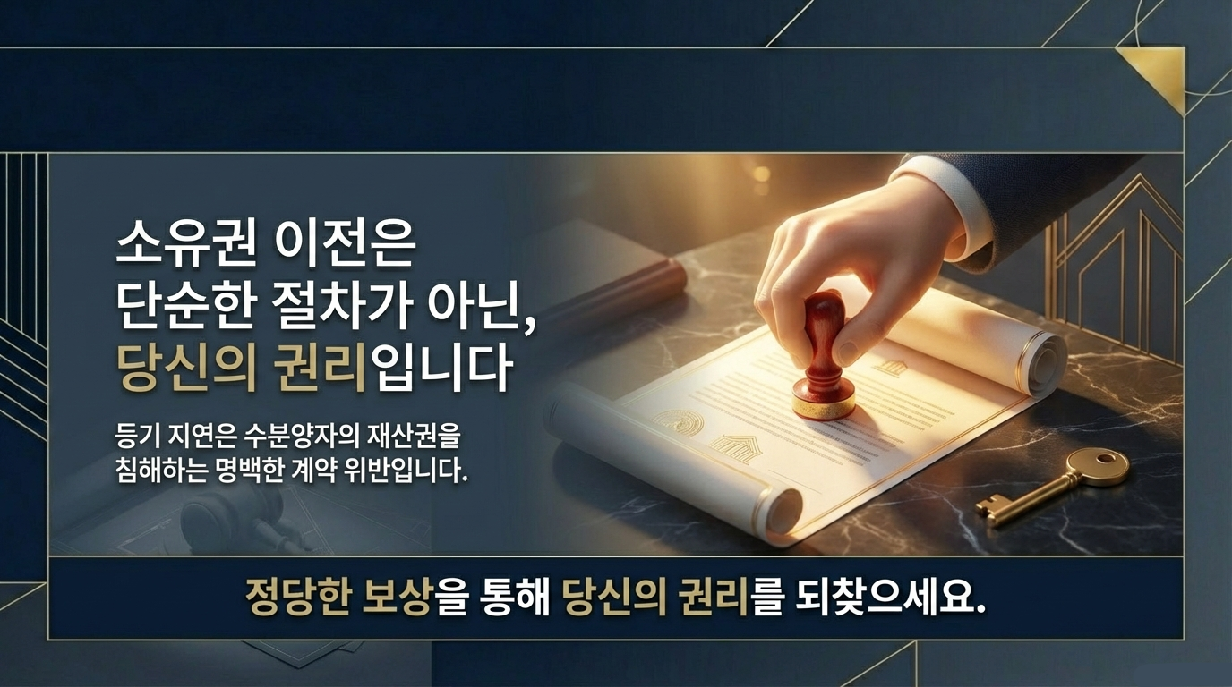 분양받은 아파트의 소유권이전등기 지연은 단순한 행정 절차의 지연이 아닌, 수분양자의 재산권을 침해하는 명백한 계약 위반 행위입니다.